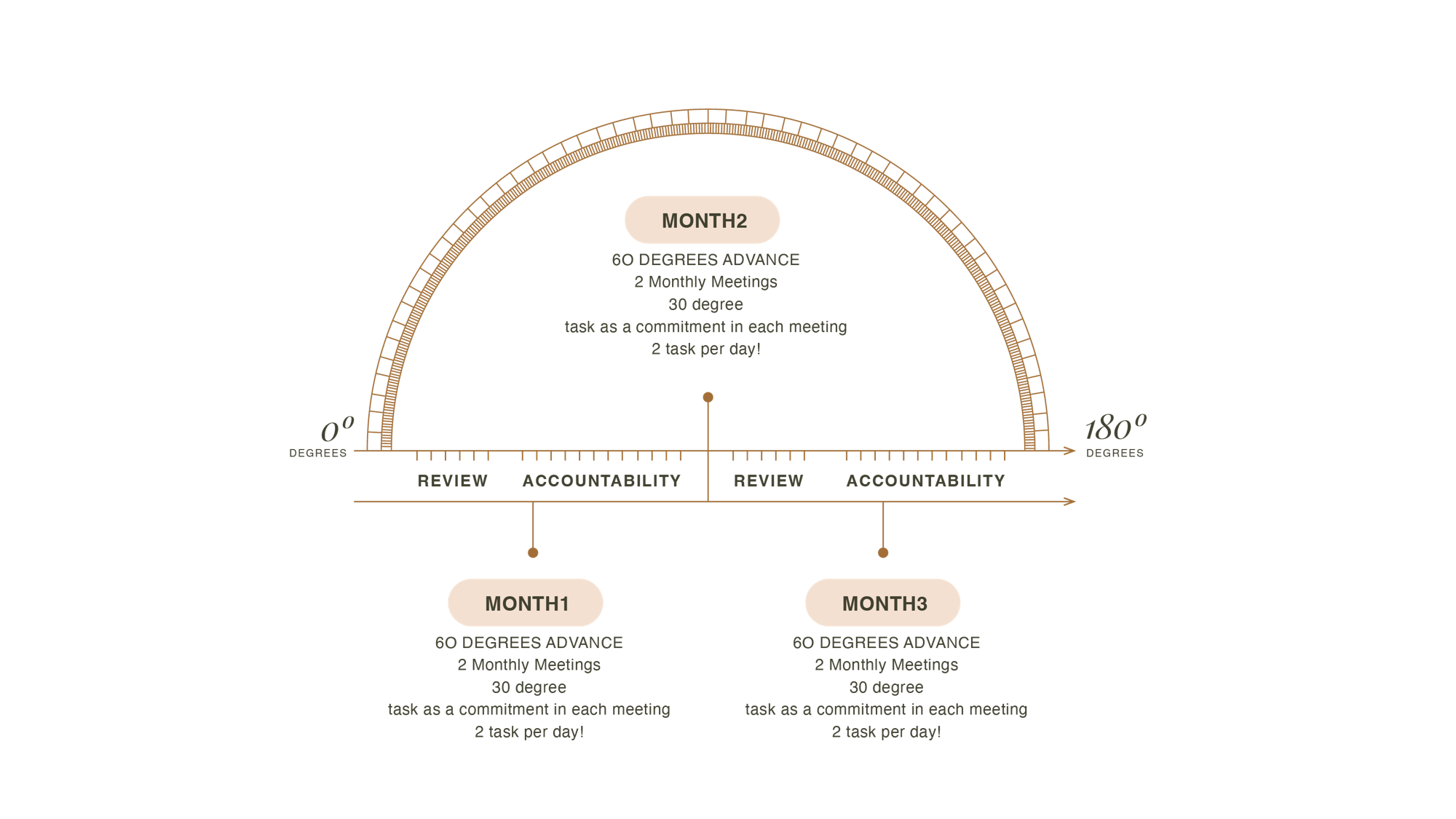 We’ll set Milestones Reviews, Rewards or Readjusments to take action and reach your objectives.